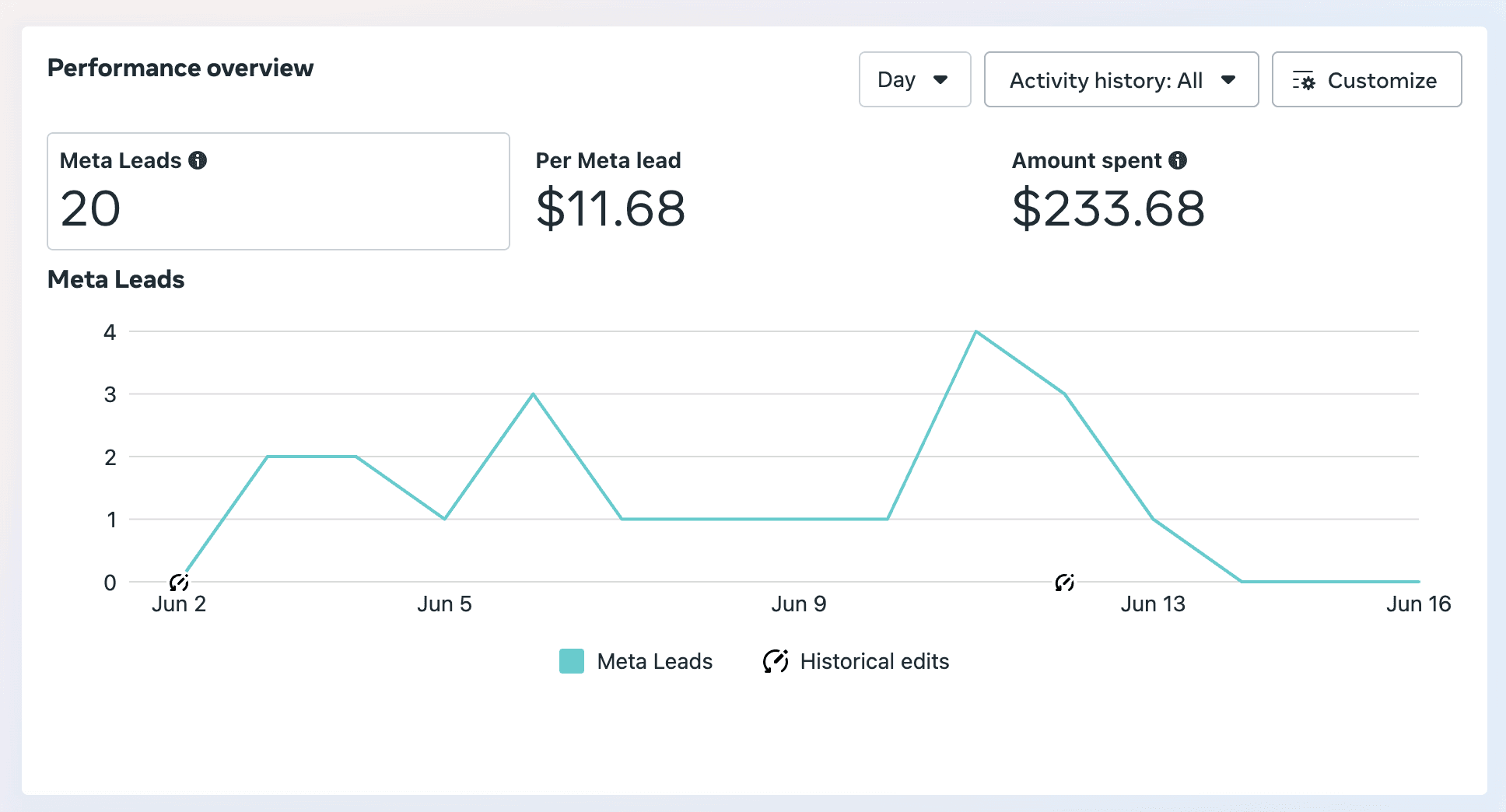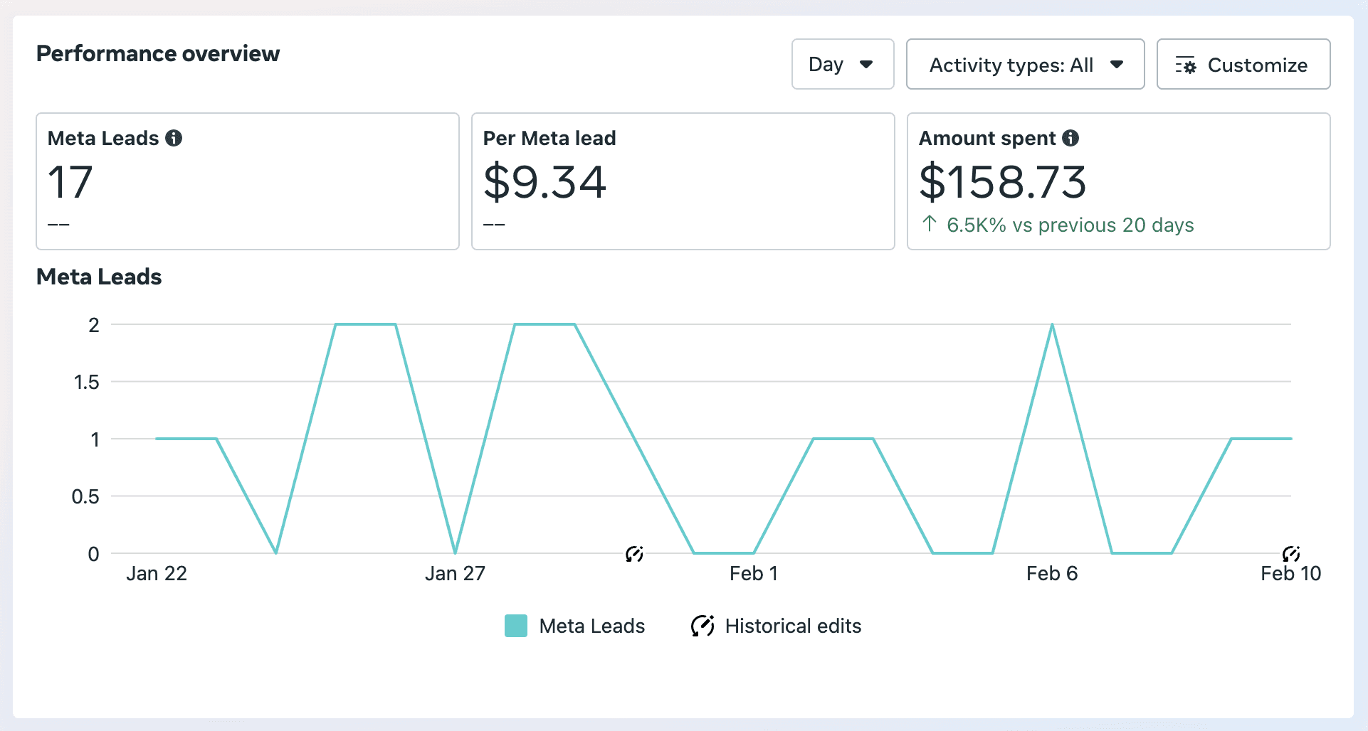 Este cliente consiguió su segundo anuncio ganador en solo 10 días. Hoy cada $9.34 invertidos en este anuncio le generan un nuevo prospecto.