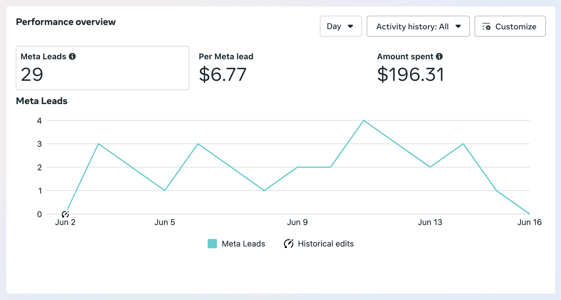 Este cliente consiguió su anuncio ganador en solo 7 días. Hoy cada $6.77 invertidos le generan un nuevo prospecto.